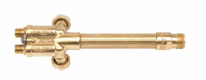 The Victor 315FC+ Welding Torch Handle boasts a solid brass composition with imporved flow capabilities. This torch handle comes fully equipped with built in flashback arrestors and reverse flow check-valves. It accepts Victor W Series welding nozzles and MFA Series heating nozzles.